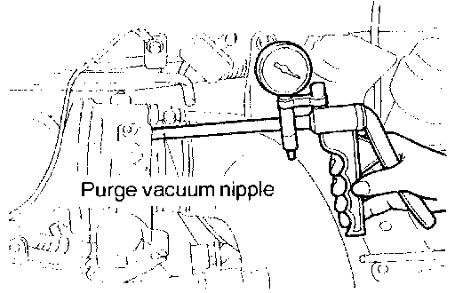 1. Disconnect the vacuum hose from the throttle body purge vacuum nipple and connect a hand vacuum pump to the nipple