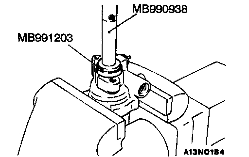 Use a caliper gauge and a micrometer to measure the dimensions A and B. Subtract value of B from value of A to calculate the clearance between shaft and oil pump body.