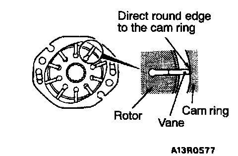 - Check the contact surface of cam ring and vanes for "stepped" wear.