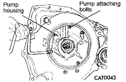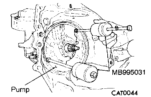 17. Strike the weights of the pullers against the bolt heads of the tools to loosen the pump. "Push in" on input shaft while loosening pump.