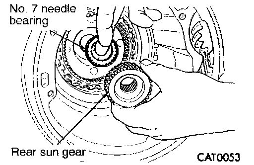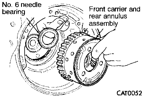 24. Twist and pull to remove front carrier and rear annulus assembly. Remove No. 6 needle bearing.