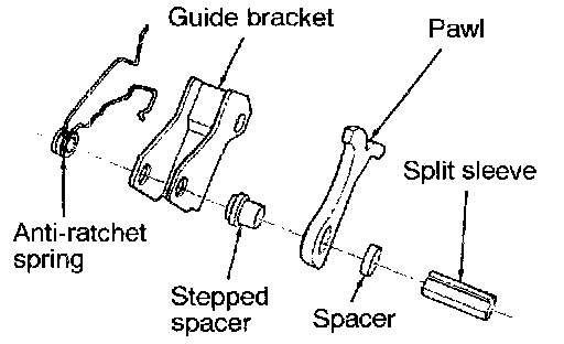 60. Drive out park rod guide bracket anchor shaft with a hammer and drift.