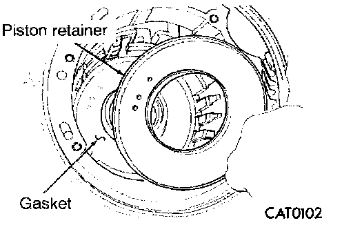 65. Remove Torx-loc screws attaching low/reverse clutch piston retainer.