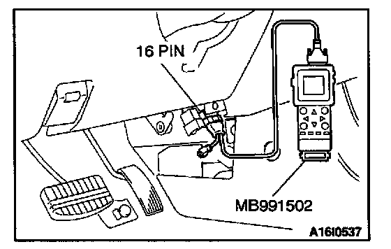 1. Connect scan tool MB991502 to the data link connector.