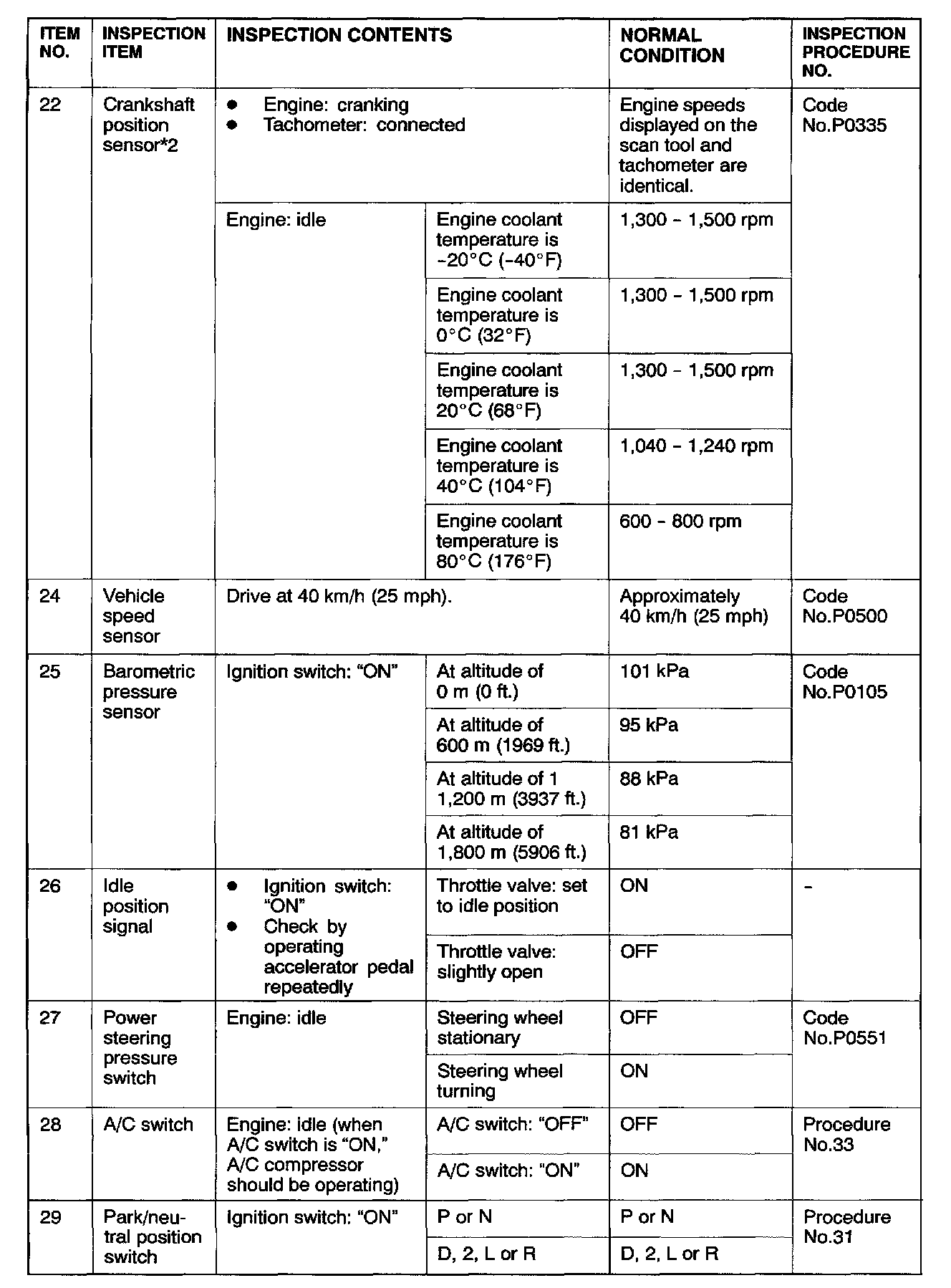 *1: In a new vehicle [driven approximately 500 km (311 mile) or less], the volume air flow sensor output frequency is sometimes 10% higher than the standard frequency