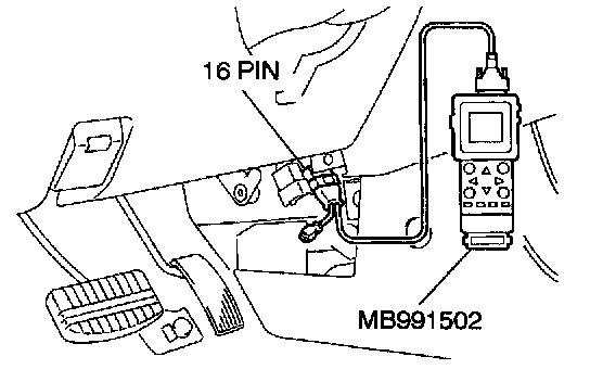 1. Connect scan tool MB991502 to the data link connector.