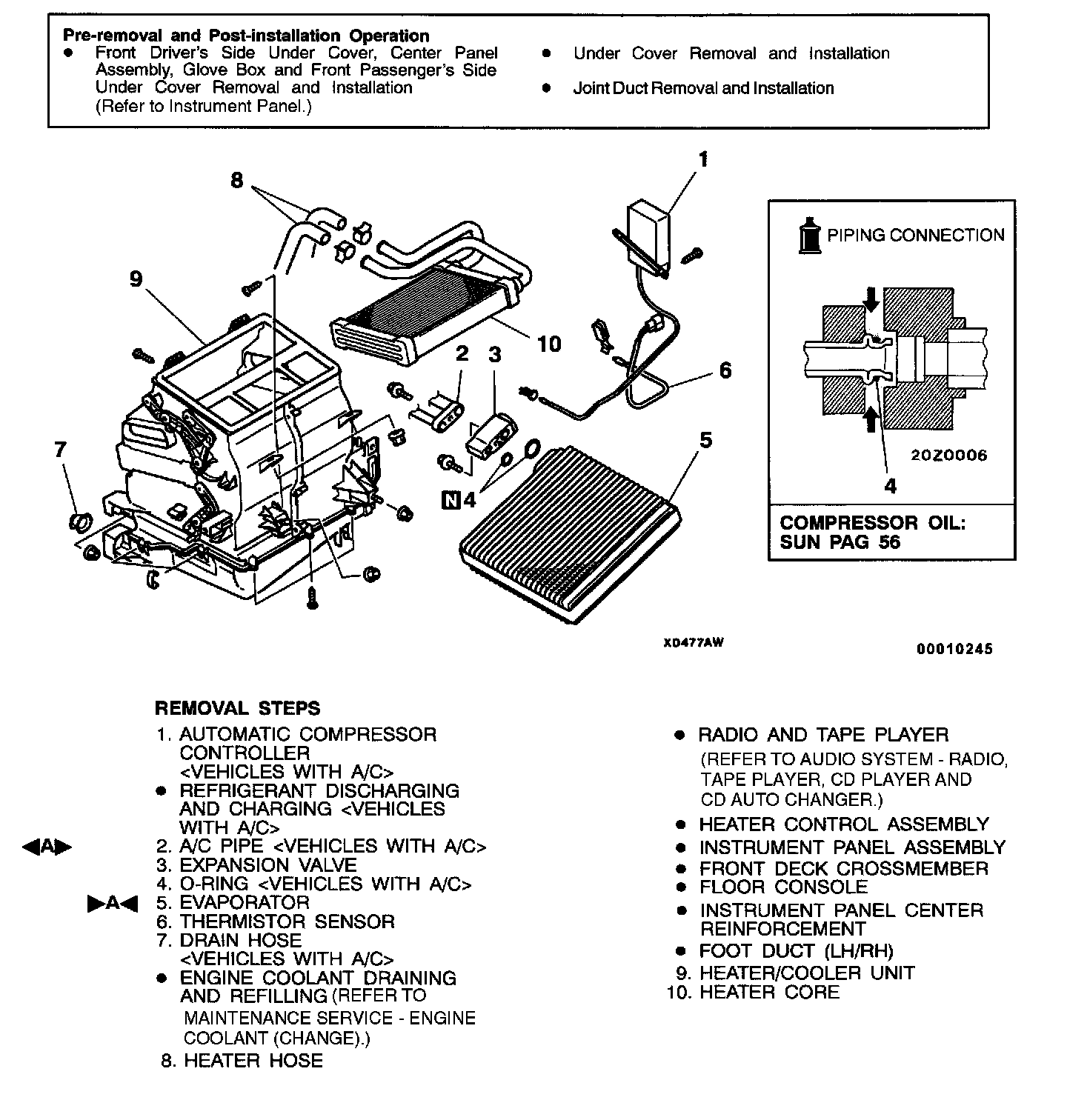 HEATER/COOLER UNIT, HEATER CORE AND EVAPORATORREMOVAL AND INSTALLATION