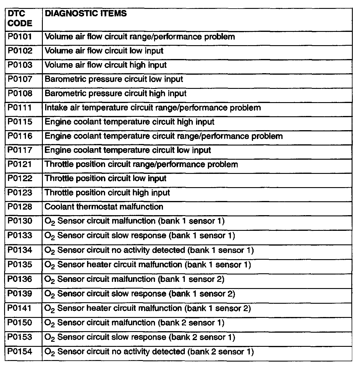 P0101 - P0154: