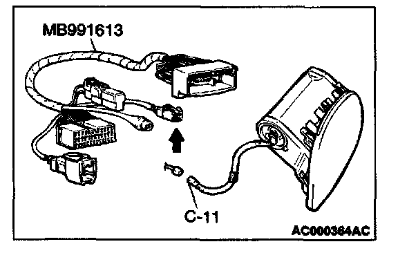 STEP 1. Check the front passenger's side air bag module line using the scan tool and MB991613 SRS Check harness.
