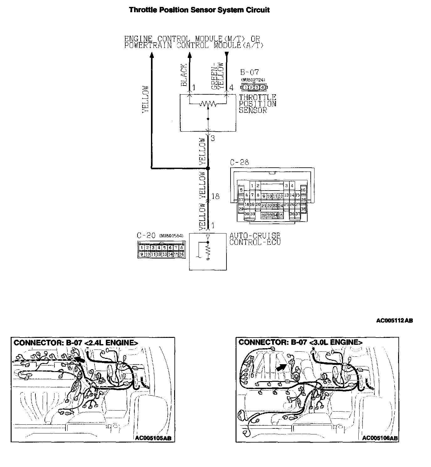 STEP 4. Check the harness wire between throttle position sensor connector B-07 and auto-cruise control-ECU connector C-20.