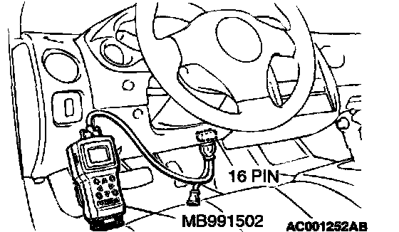 CAUTION: To prevent damage to scan tool MB9911502, always turn the ignition switch to "LOCK" (OFF) position before connecting or disconnecting scan tool MB991502.