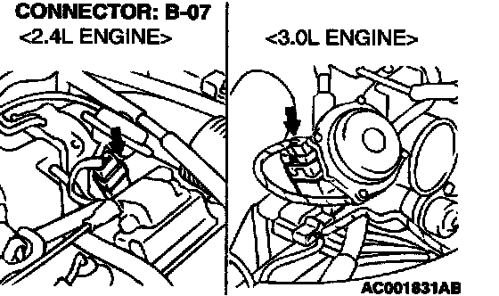 1. Do not disconnect connector C-57 <2.4L Engine> or C-59 <3.0L Engine>.