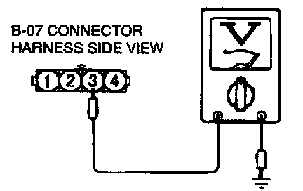 STEP 8: Check the power supply voltage at throttle position sensor connector B-07 by backprobing.