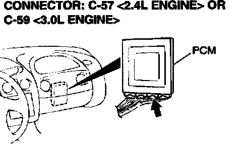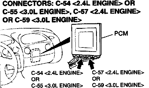 STEP 19: Check connectors C-54 <2.4L Engine> or C-55 <3.0L Engine> and C-57 <2.4L Engine> or C-59 <3.0L Engine> at PCM for damage.