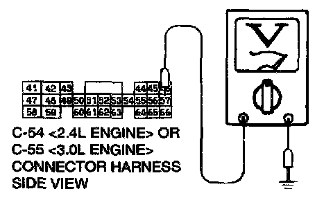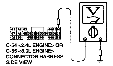 STEP 9. Check the power supply voltage at PCM connector C-54 <2.4L Engine> or C-55 <3.0L Engine> by backprobing.