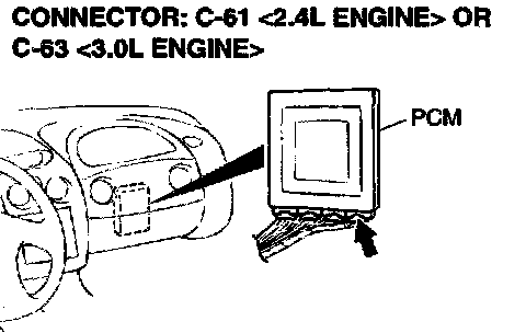 STEP 8: Check connector C-61 <2.4L Engine> or C-63 <3.0L Engine> at PCM for damage.