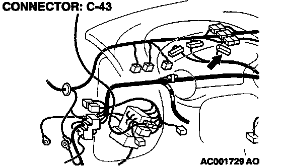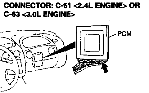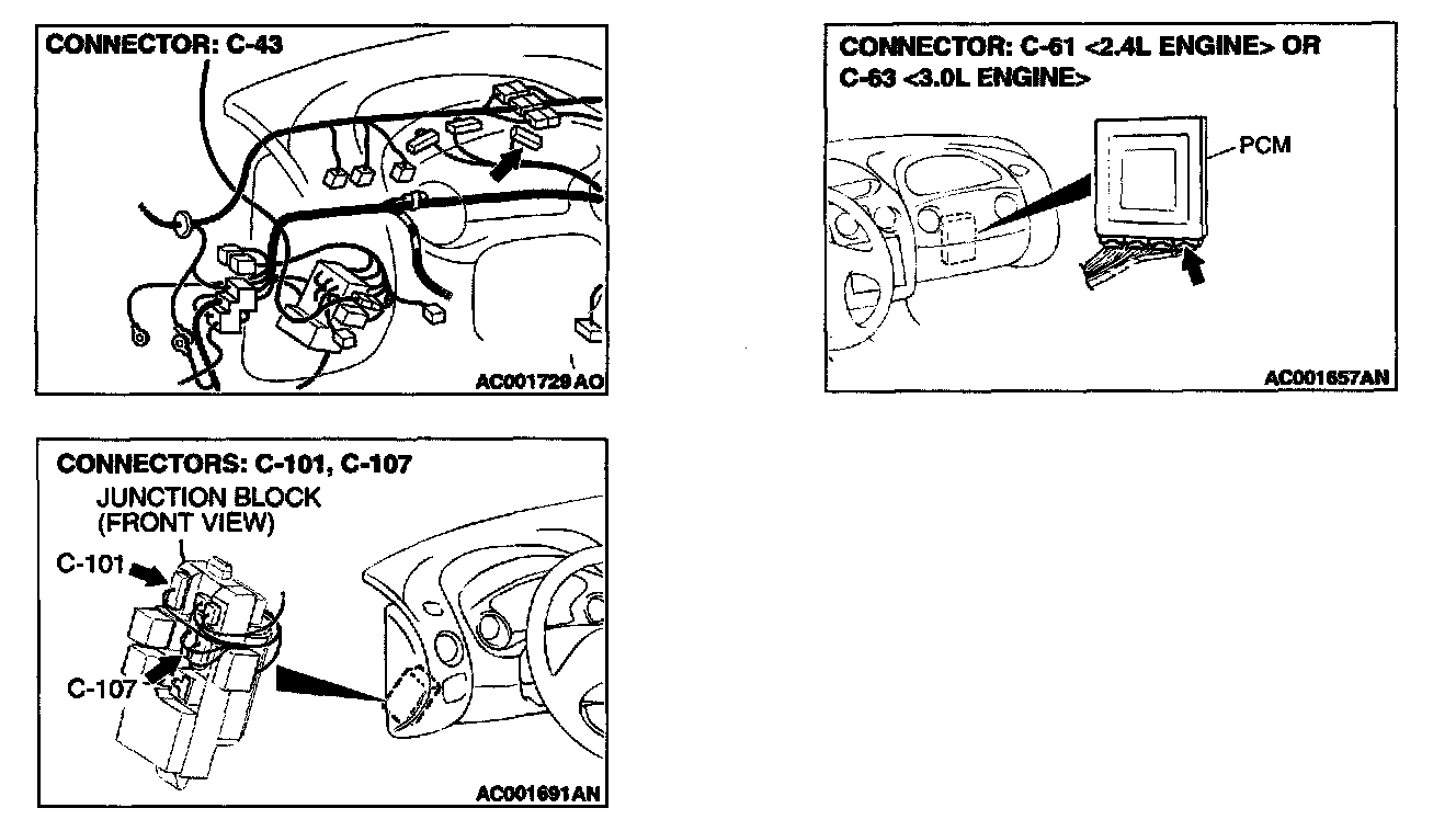 STEP 7. Check harness for open circuit, short circuit to ground and damage between combination motor connector C-43 terminal 9 and PCM connector C-61 <2.4L Engine> or C-63 <3.0L Engine> terminal 121.
