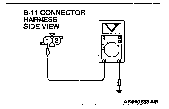 STEP 2. Check the sensor output voltage at engine coolant temperature sensor connector B-11 by backprobing.