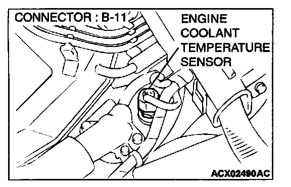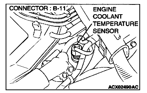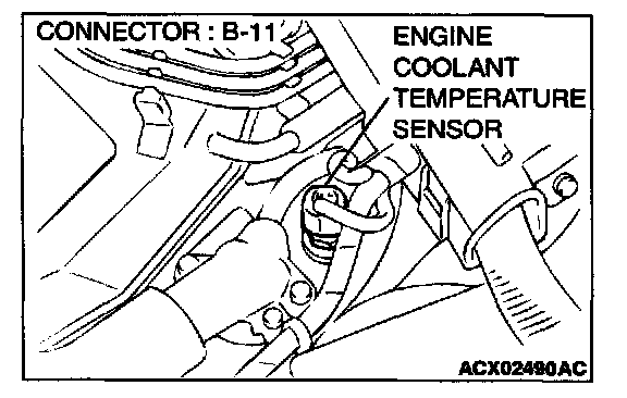 1. Disconnect the engine coolant temperature sensor connector B-11