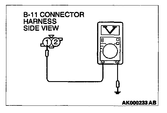 STEP 2. Check the sensor output voltage at engine coolant temperature sensor connector B-11 by backprobing.