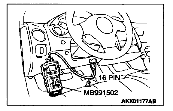 CAUTION: To prevent damage to scan tool MB991502, always turn the ignition switch to the "LOCK" (OFF) position before connecting or disconnecting scan tool MB991502.