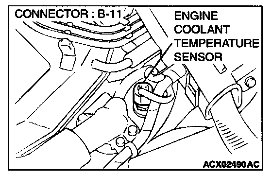 1. Disconnect the engine coolant temperature sensor connector B-11