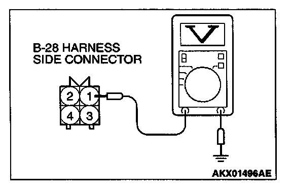 STEP 3. Check the power supply voltage at right bank heated oxygen sensor (rear) harness side connector B-28.