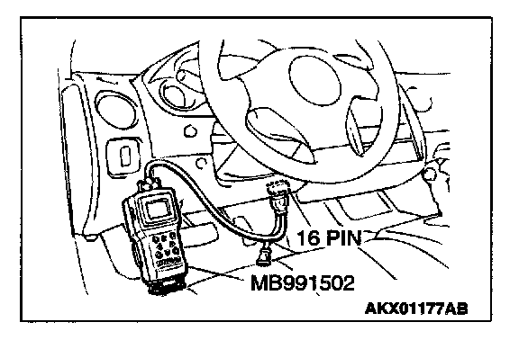 CAUTION: To prevent damage to scan tool MB991502, always turn the ignition switch to the "LOCK" (OFF) position before connecting or disconnecting scan tool MB991502.