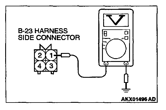 STEP 3. Check the power supply voltage at left bank heated oxygen sensor (rear) harness side connector B-23.