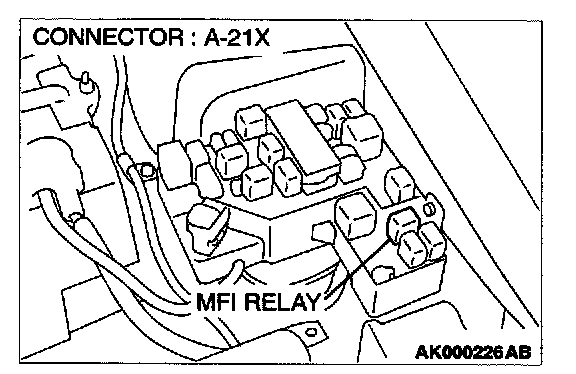 STEP 4. Check connector A-21X at the MFI relay for damage.