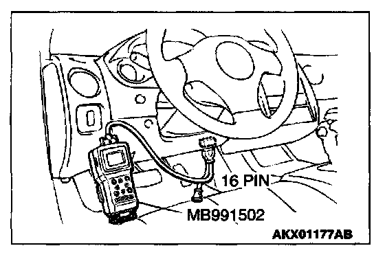 CAUTION: To prevent damage to scan tool MB991502, always turn the Ignition switch to the "LOCK" (OFF) position before connecting or disconnecting scan tool MB991502.