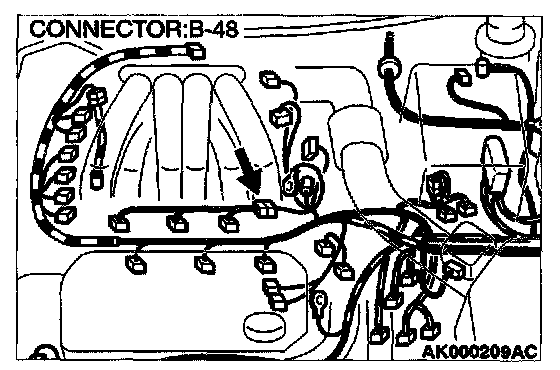 STEP 5. Check connector B-48 at injector intermediate connector for damage.