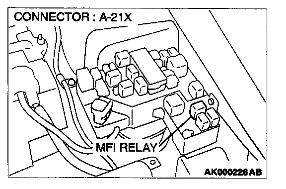 STEP 13. Check connector A-21X at the MFI relay for damage.