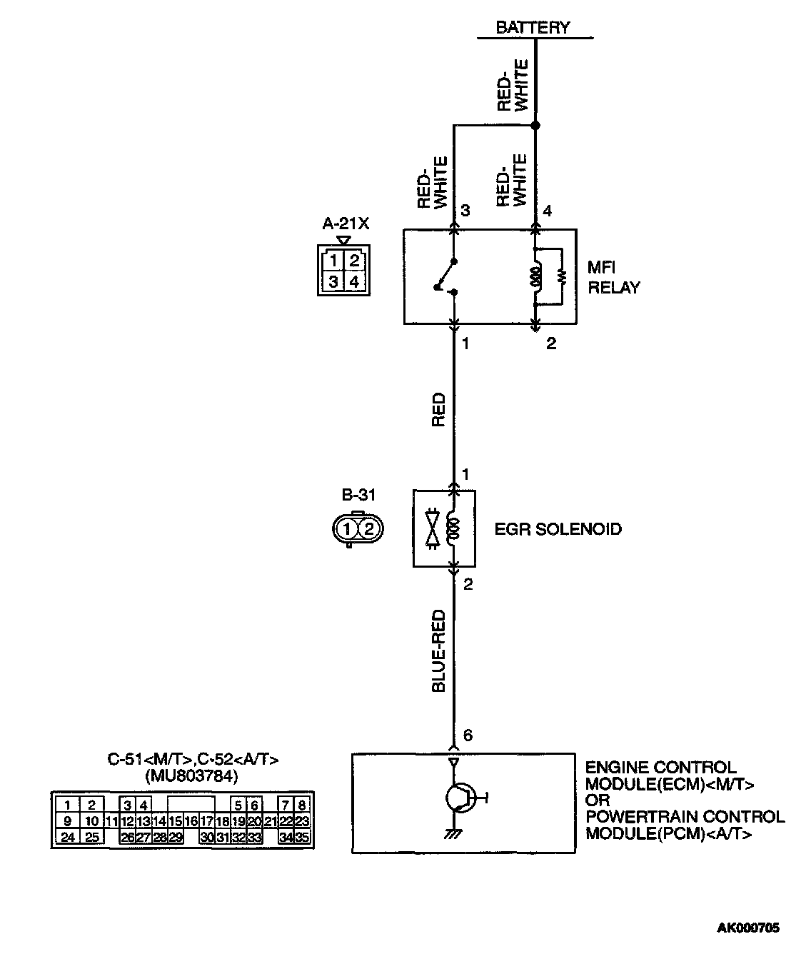 - The EGR solenoid power is supplied from the MFI relay (terminal 1).