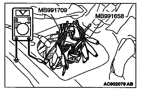 2. Use special tool (MB991658) to connect terminals 2 and 3 of the disconnected sensor connector and those of the harness side connector, respectively.