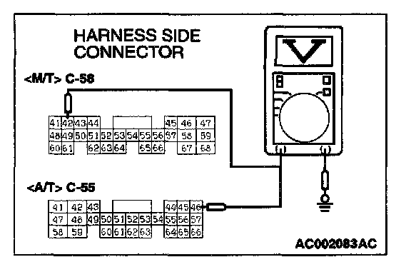 STEP 15. Check the ground circuit voltage at ECM connector C-58