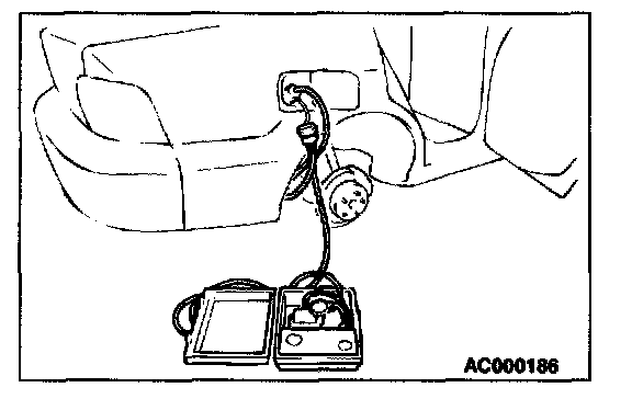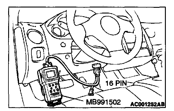 CAUTION: To prevent damage to scan tool MB991502, always turn the ignition switch to "LOCK" (OFF) position before connecting or disconnecting scan tool MB991502.