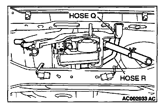 STEP 22. Check for clogging in the evaporator line from hose 0 and hose R.
