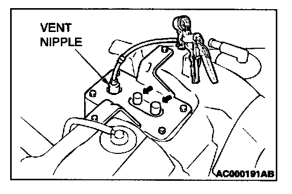 1. Connect a hand vacuum pump to the vent nipple of the evaporative emission canister.