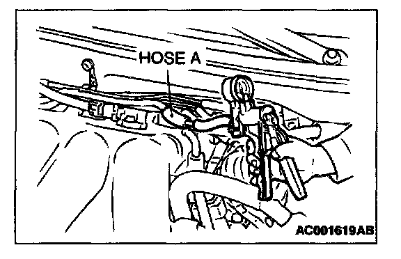 1. Disconnect hose A at the intake manifold side, and then connect a hand vacuum pump to the hose.
