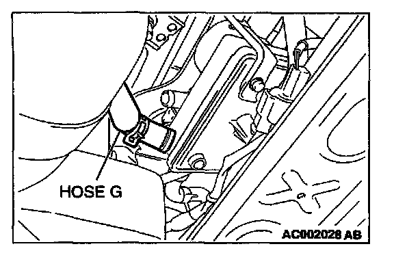 1. Disconnect hose F at the intake manifold side, and then connect a hand vacuum pump to hose F at the floor pipe side.