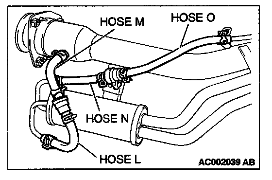 1. Disconnect hose I from the evaporative emission canister side, and unplug the hose I.