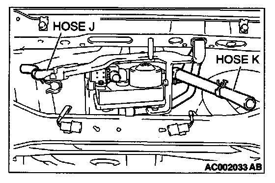 2. Disconnect hose K at the fuel tank side, and then plug the hose.