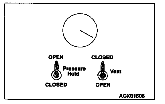 2. On the Evap pressure pump, set the pressure/hold valve to OPEN, and set the vent valve to CLOSED. Turn the pump timer to ON. You can reset the timer as required. (These settings are listed under "Leak Test" in the pump instructions.)