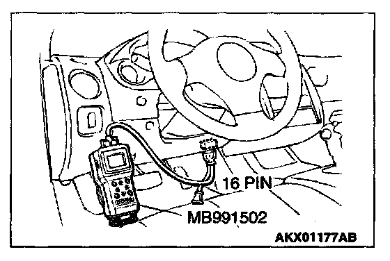 CAUTION: To prevent damage to scan tool MB991502, always turn the ignition switch to the "LOCK" (OFF) position before connecting or disconnecting scan tool MB991502.