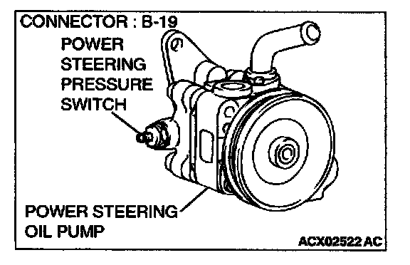 STEP 3. Check connector B-19 at power steering pressure switch for damage.
