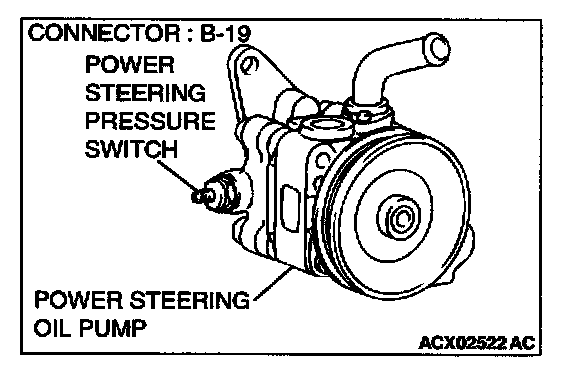 - The power steering pressure switch converts the existence of a power steering load into a high/low voltage, and inputs it into the ECM