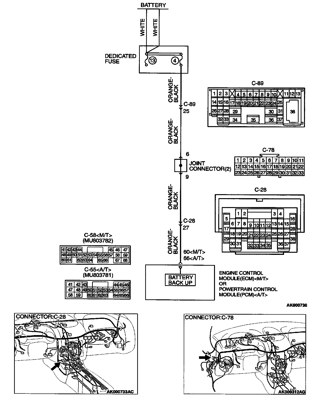 STEP 3. Check the backup power supply voltage at ECM connector C-58