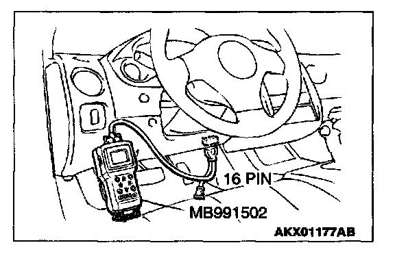 CAUTION: To prevent damage to scan tool MB991502, always turn the ignition switch to the "LOCK" (OFF) position before connecting or disconnecting scan tool M6991502.