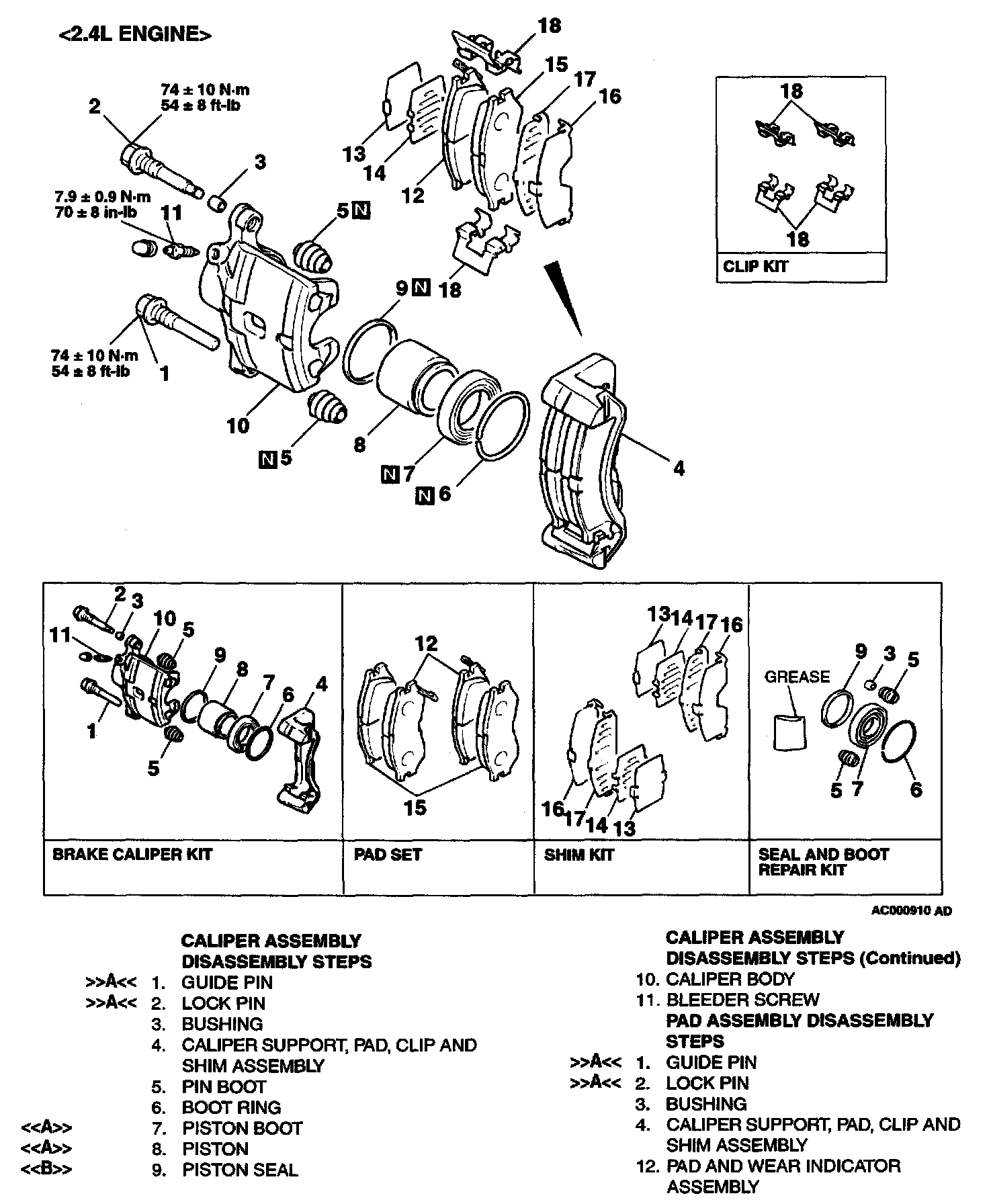 - If there is significant difference in the thickness of the pads on the left and right sides, check the sliding condition of the piston, lock pin and guide pin.